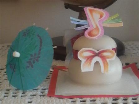 部屋に飾るために買って来た鏡餅に、ちょっとした飾りを作りました。